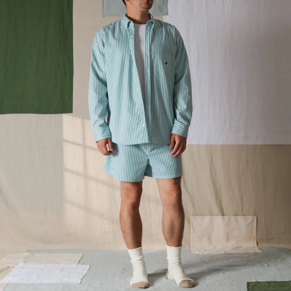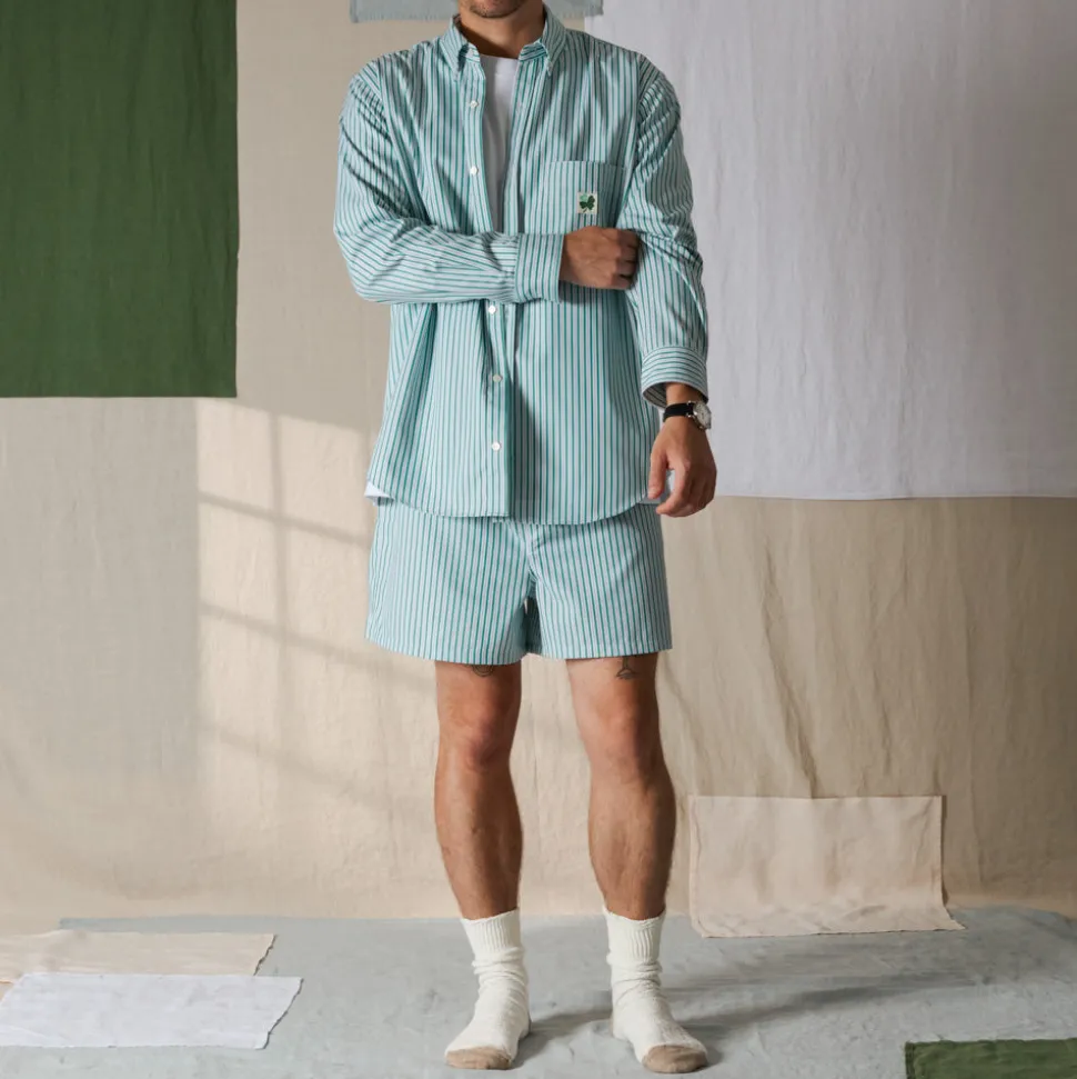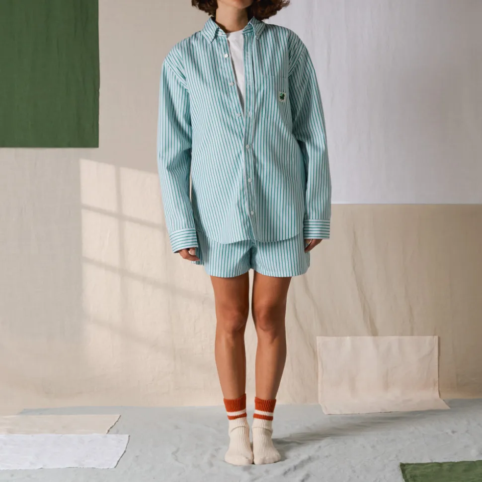 Merci dévoile son nouvel ensemble. Toujours accompagné de son étiquette Trèfle-Coeur, il offre un look décontracté alliant simplicité et confort. Composé d’une chemise à manche longue et d’un short boxer ample, cet ensemble en coton est décliné en six coloris à motif uni, rayures, ou carreaux.