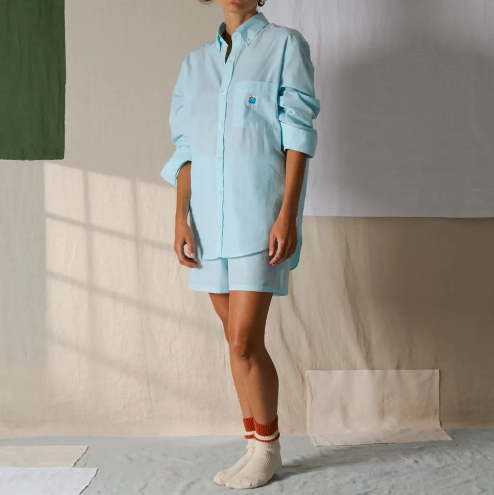Merci dévoile son nouvel ensemble. Toujours accompagné de son étiquette Trèfle-Coeur, il offre un look décontracté alliant simplicité et confort. Composé d’une chemise à manche longue et d’un short boxer ample, cet ensemble en coton est décliné en six coloris à motif uni, rayures, ou carreaux.