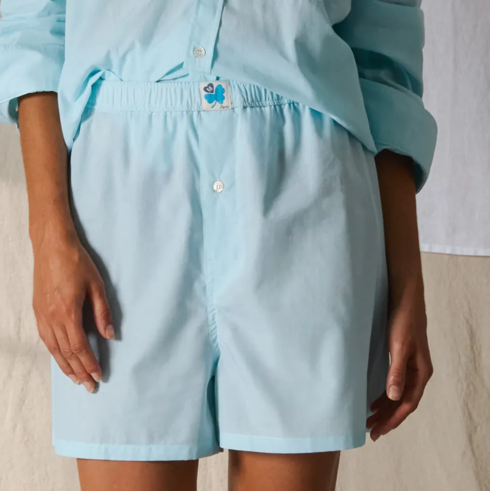 Merci dévoile son nouvel ensemble. Toujours accompagné de son étiquette Trèfle-Coeur, il offre un look décontracté alliant simplicité et confort. Composé d’une chemise à manche longue et d’un short boxer ample, cet ensemble en coton est décliné en six coloris à motif uni, rayures, ou carreaux.