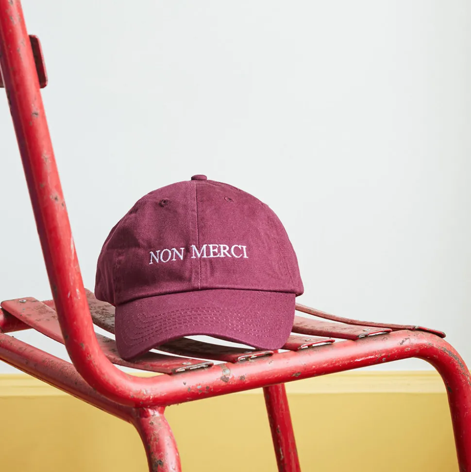 Broderie « Non Merci » sur le devant de la casquette et inscription « 111 Boulevard Beaumarchais » à l’arrière