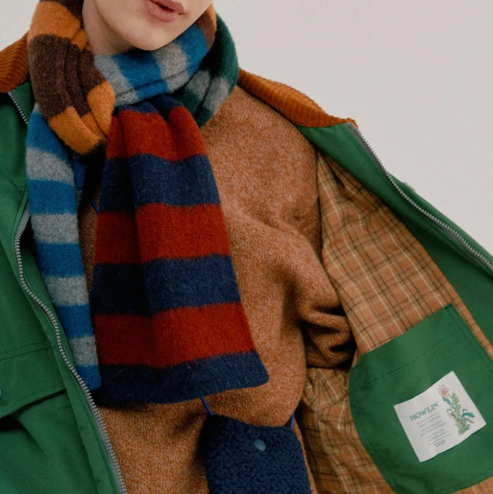 Howlin est une marque de tricots basée à Anvers. Depuis 1981, la marque produit des tricots de qualité en Écosse, en 2009 label Howlin’ est lancé. Le mode de fabrication reste traditionnel mais Howlin’ offre plus de place à la fantaisie dans les formes et les motifs. Howlin’, s’efforce de créer des produits intemporels, ludiques et fabriqués avec soin. Qu’il s’agisse d’une écharpe ou d’un gilet à poils longs, tous leurs produits sont fabriqués individuellement et finis à la main par des artisans qualifiés en Écosse, en Irlande ou en Belgique, avec des fils de la meilleure qualité possible.