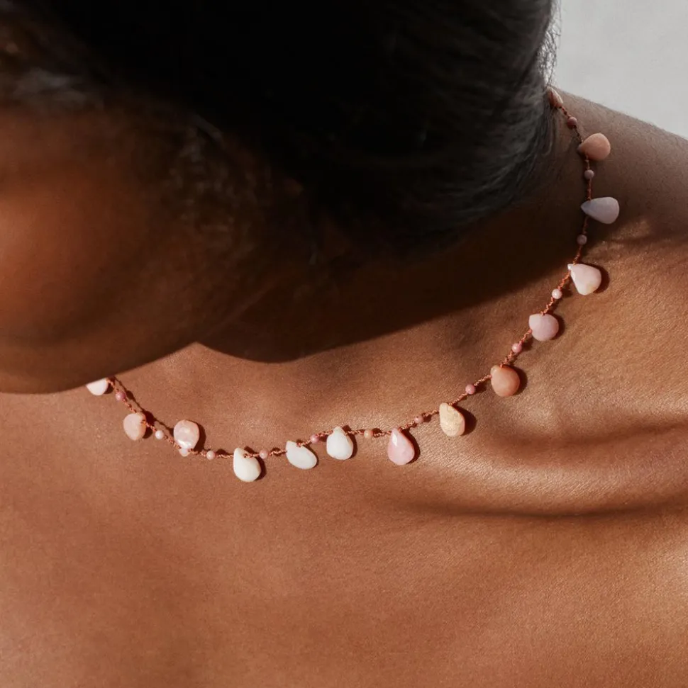 Ivarene est une marque de bijoux qui privilégie les pierres naturelles, montées à la main dans leur atelier parisien. Les pierres, sélectionnées pour leur beauté brute, sont polies sans traitement, offrant des couleurs naturelles et des dégradés harmonieux. Chaque création est unique, montée sur un cordon perlé avec des nœuds, créant l’illusion que les pierres flottent.