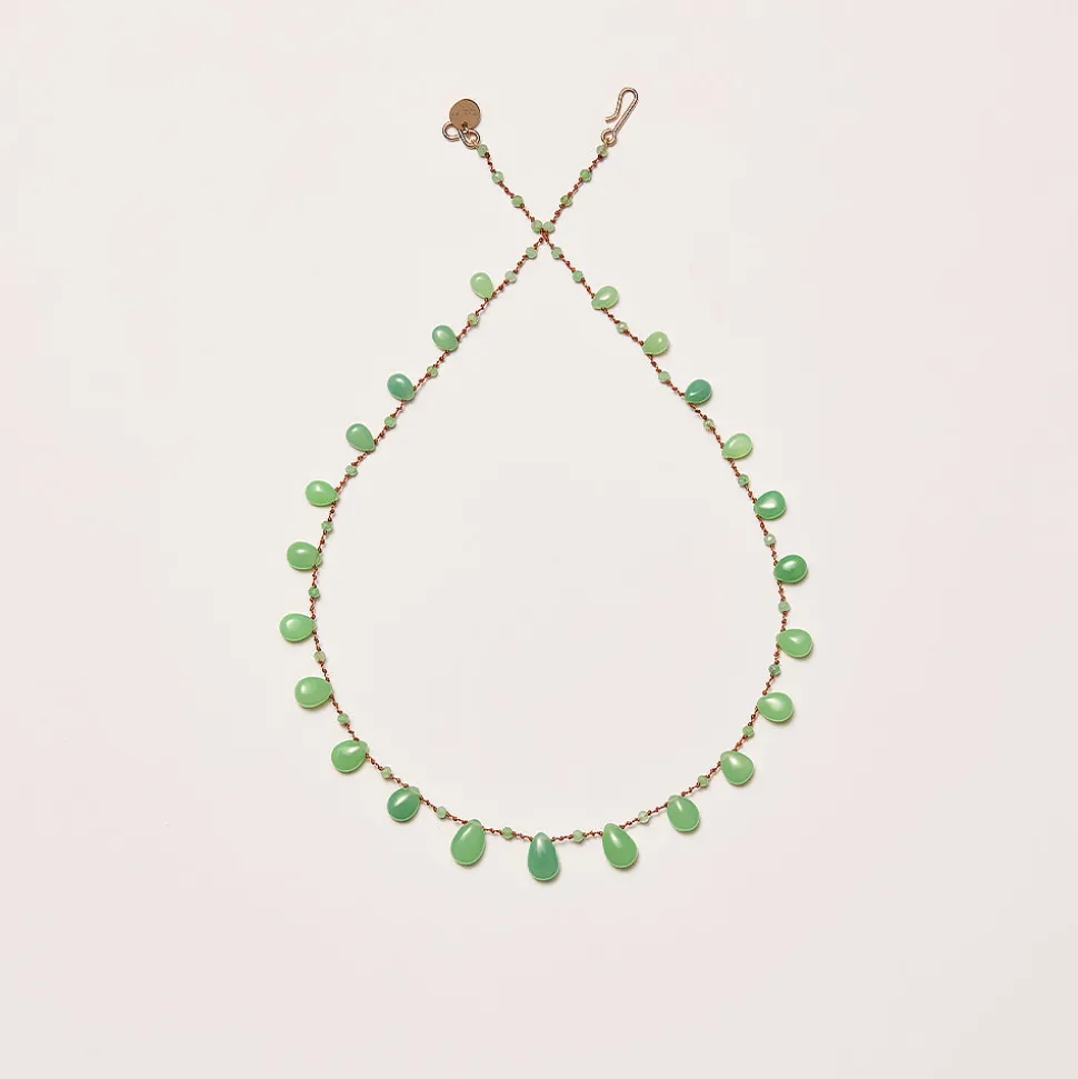 Ivarene est une marque de bijoux qui privilégie les pierres naturelles, montées à la main dans leur atelier parisien. Les pierres, sélectionnées pour leur beauté brute, sont polies sans traitement, offrant des couleurs naturelles et des dégradés harmonieux. Chaque création est unique, montée sur un cordon perlé avec des nœuds, créant l’illusion que les pierres flottent.
