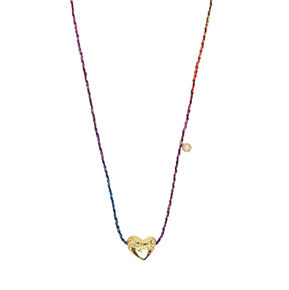 Collier à cordes arc-en-ciel fait à la main avec pendentif en argent plaqué or et breloque plaquée or en pierre perlée.