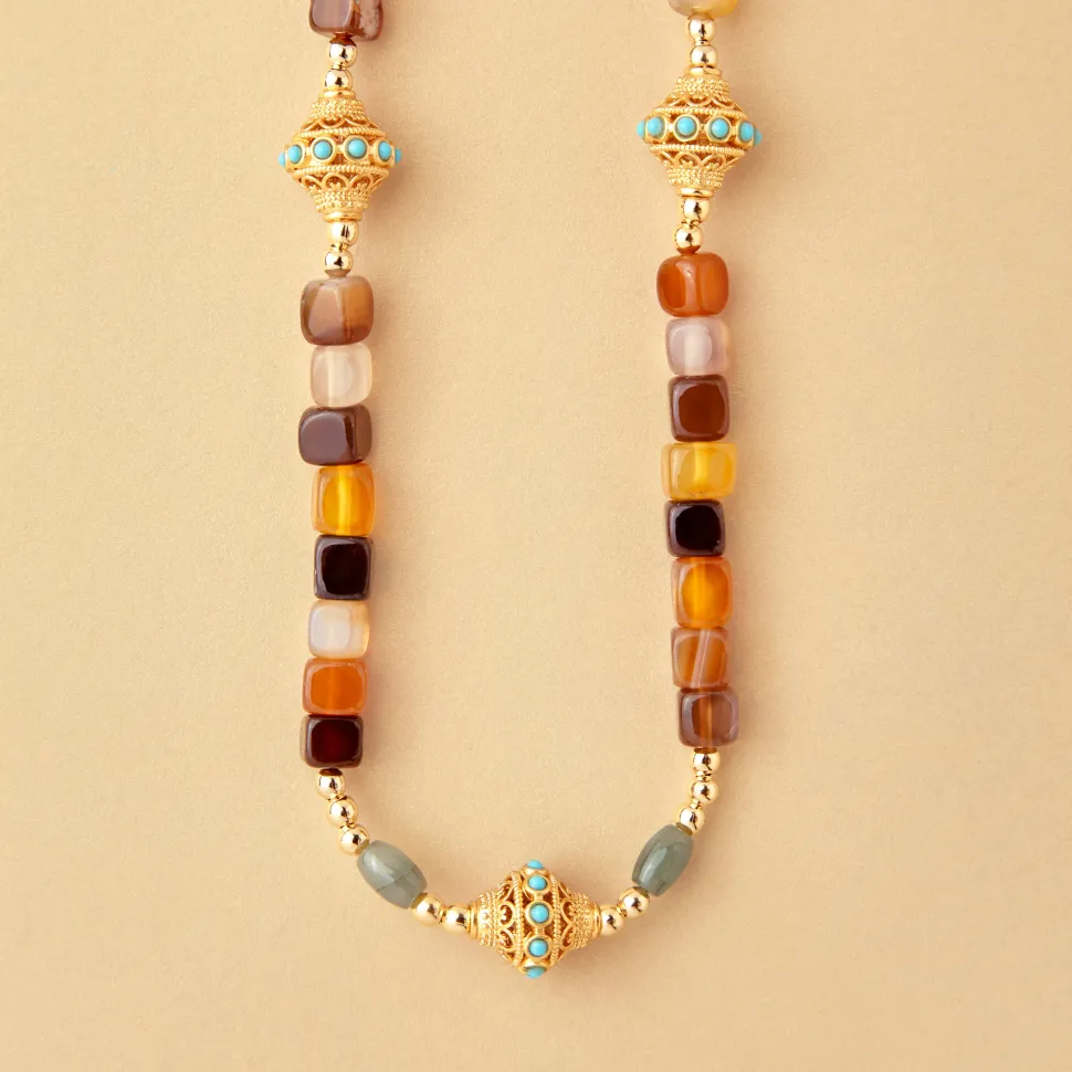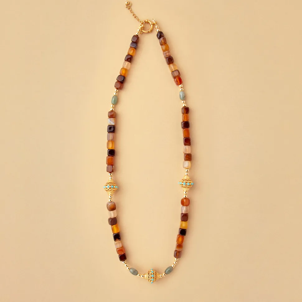 JUHU, une marque de bijoux qui s’inspire de l’Inde, berceau de la créatrice, propose une collection entièrement réalisée à la main. Son style bohème et coloré s’harmonise parfaitement avec toutes les tenues de la parisienne, favorisant le port en accumulation pour un look unique.