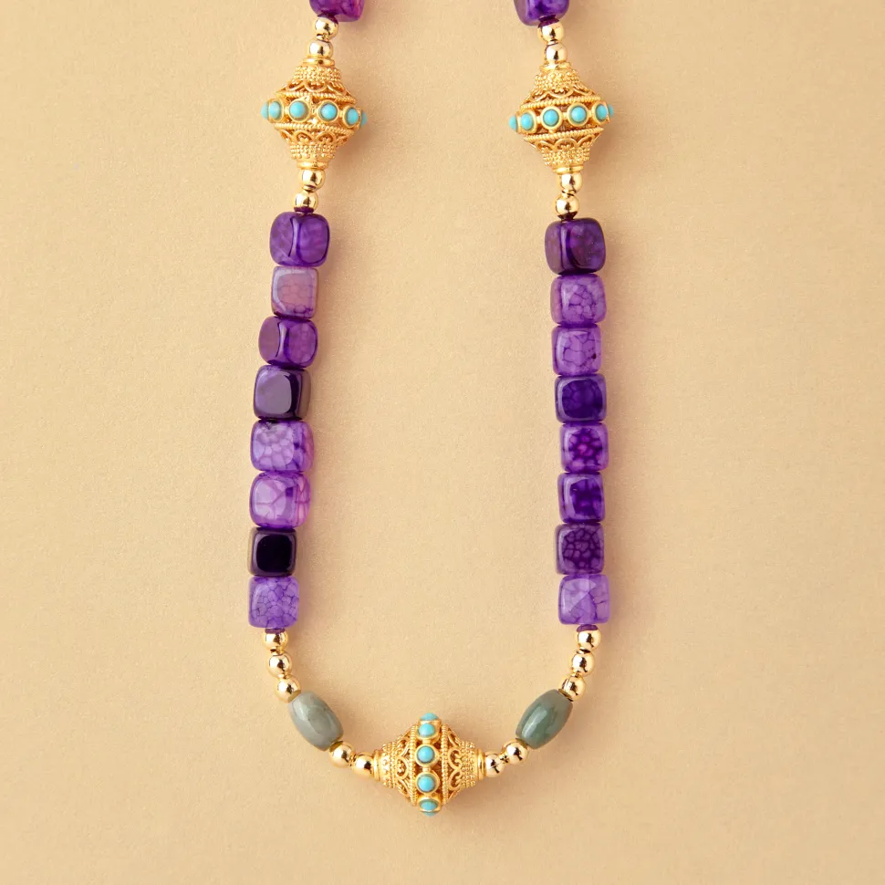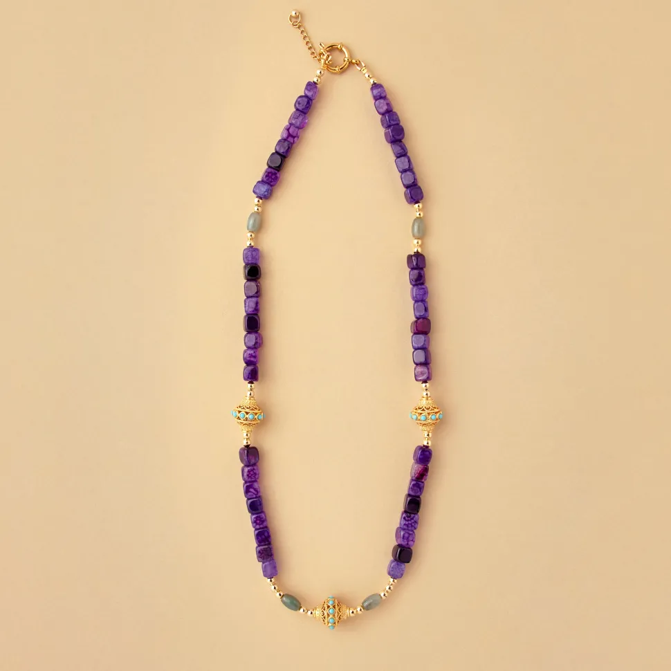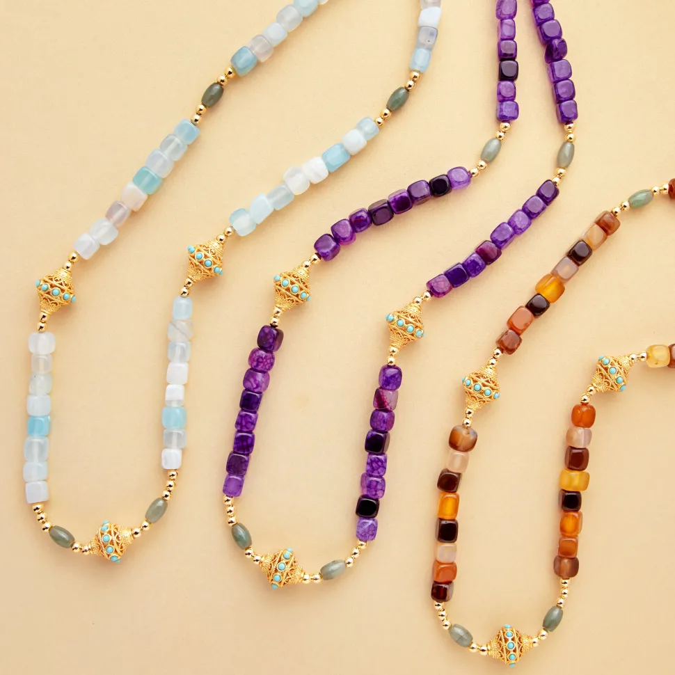 JUHU, une marque de bijoux qui s’inspire de l’Inde, berceau de la créatrice, propose une collection entièrement réalisée à la main. Son style bohème et coloré s’harmonise parfaitement avec toutes les tenues de la parisienne, favorisant le port en accumulation pour un look unique.