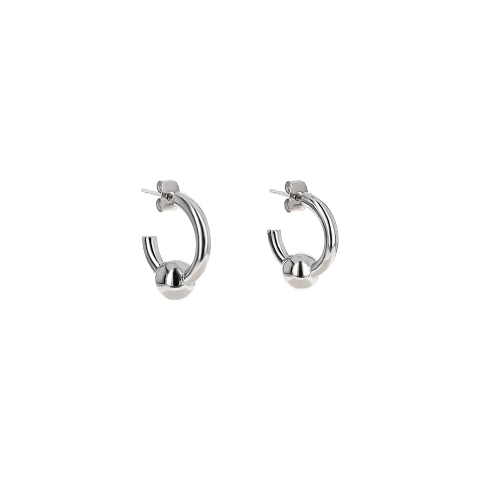 Paire de petites boucles d’oreilles ouvertes argentées.