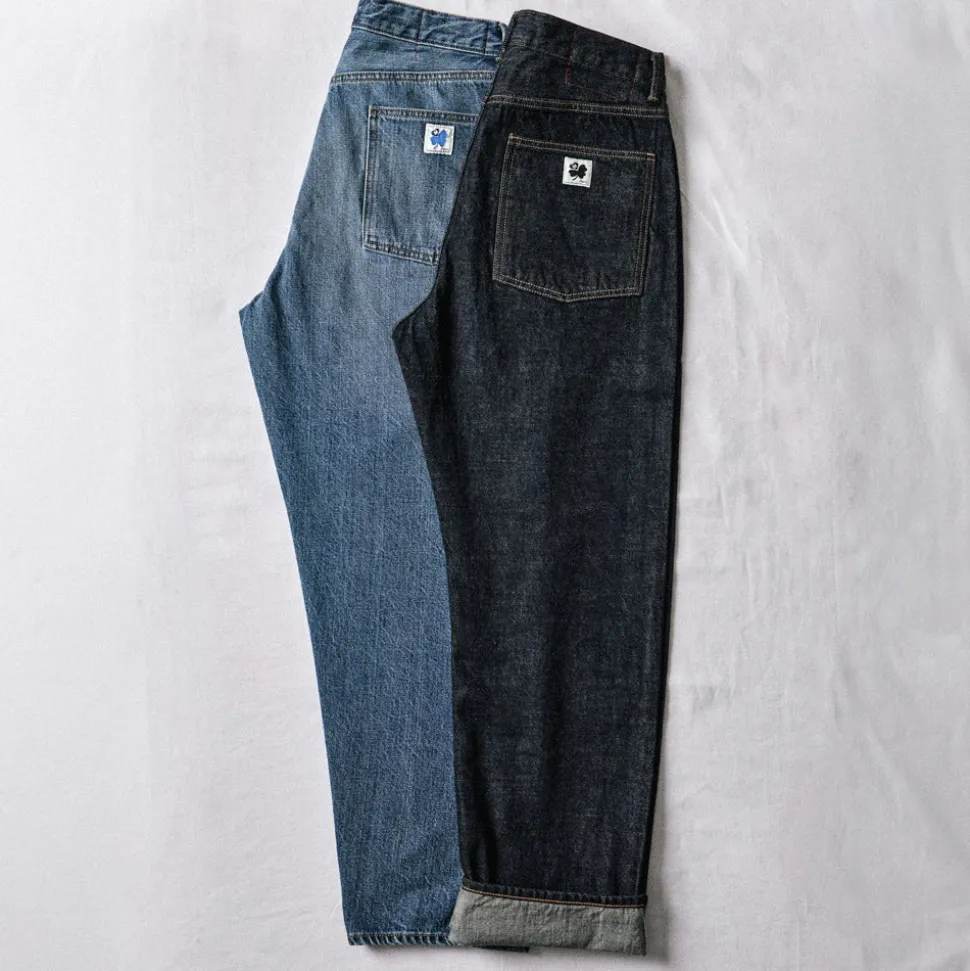 Côté teintes, Merci propose deux variations : un bleu profond avec le OneWash, et un ton plus clair et lumineux avec le StoneWash. Ces jeans selvedge, confectionnés en Corée du Sud, possèdent tout deux une étiquette Trèfle-Coeur noir, brodée sur la poche arrière.