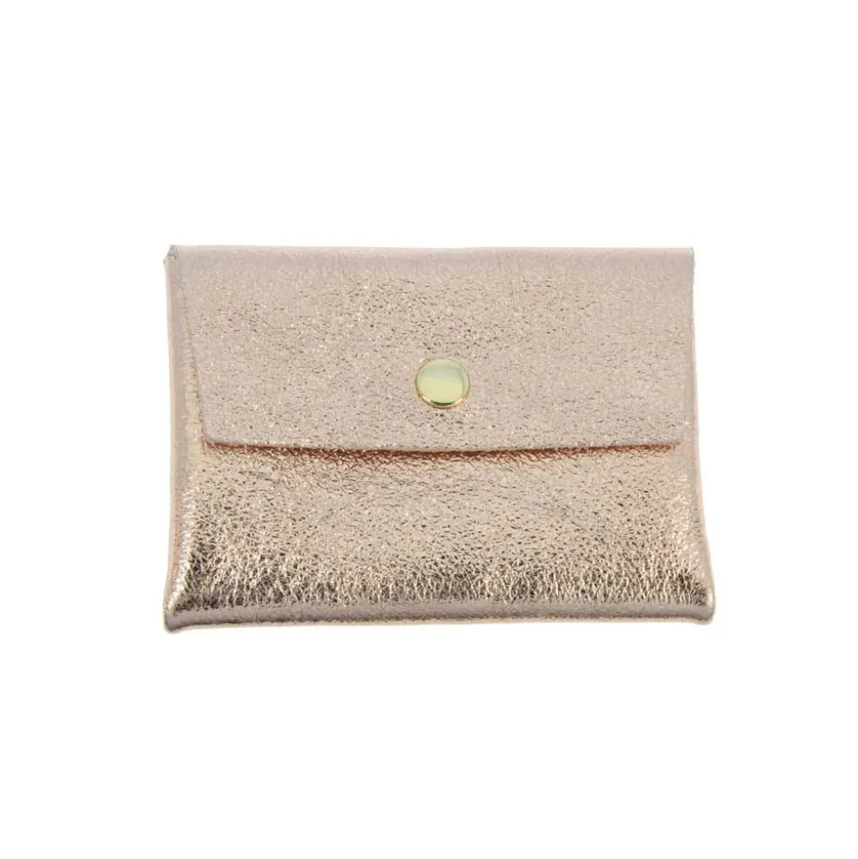 Porte-monnaie en cuir de vachette à reflets irisés.