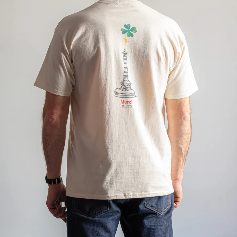 La Bastille, monument emblématique de Paris qui représente la force mais aussi la volonté et le changement, s’allie au trèfle à quatre feuilles. Ils symbolisent l’espoir d’un avenir meilleur, à travers une collection capsule dessinée à l’encre de Chine par l’illustratrice Alice Schneider, connue sous le pseudonyme, All Kids In My Head.