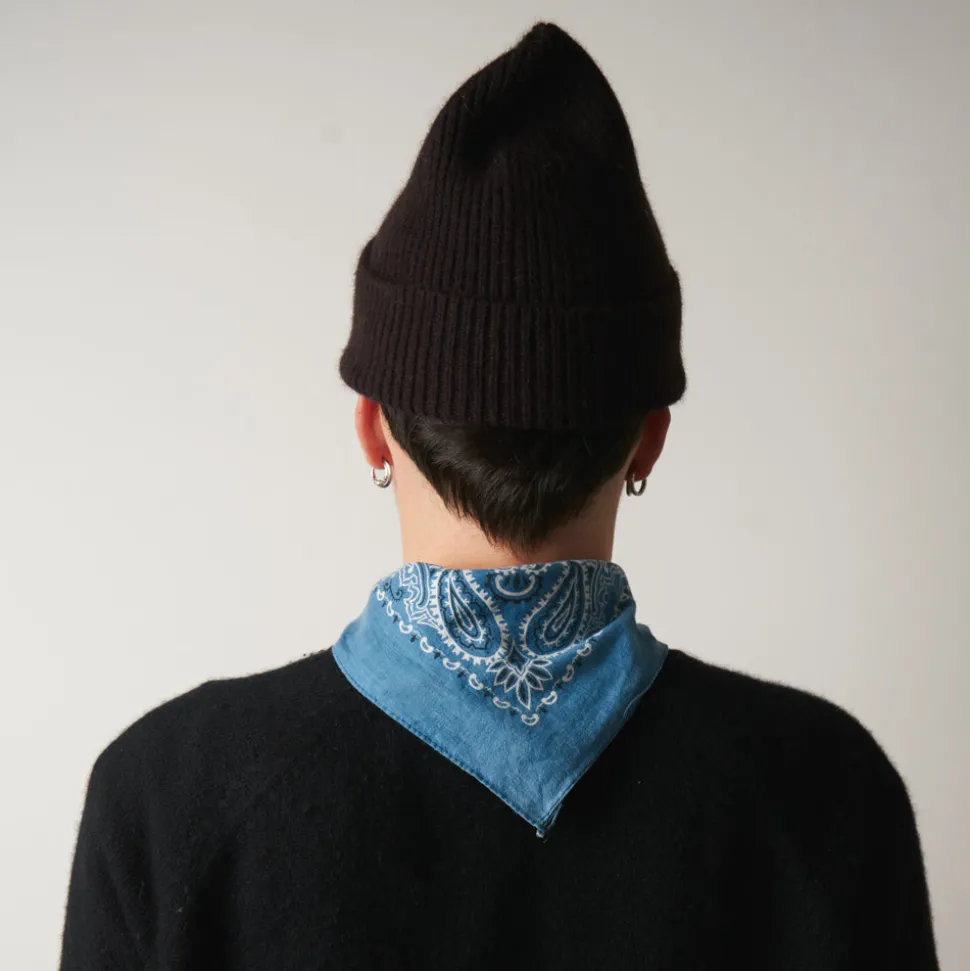 Merci réinterprète la laine à travers une collection volontairement restreinte qui témoigne d’une volonté de revenir à l’essentiel : prendre le temps de trouver la bonne coupe, de choisir un fil de qualité, de penser aux détails qui feront la différence. Bonnet Lucky: