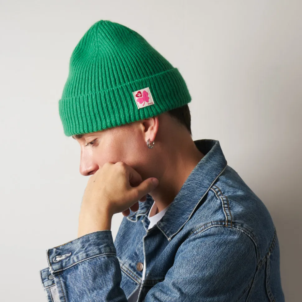 Merci réinterprète la laine à travers une collection volontairement restreinte qui témoigne d’une volonté de revenir à l’essentiel : prendre le temps de trouver la bonne coupe, de choisir un fil de qualité, de penser aux détails qui feront la différence. Bonnet Lucky: