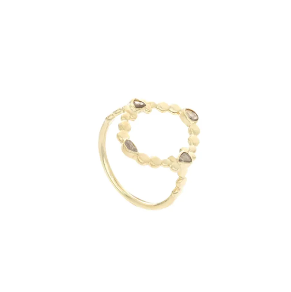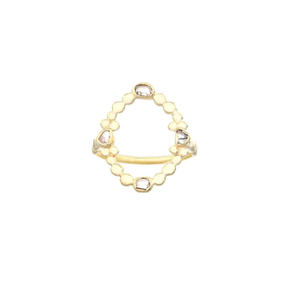 Bague en Argent 925 doré composée d’un anneau oval serti de diamants Polki et de mini pierres en argent façonnées à la main