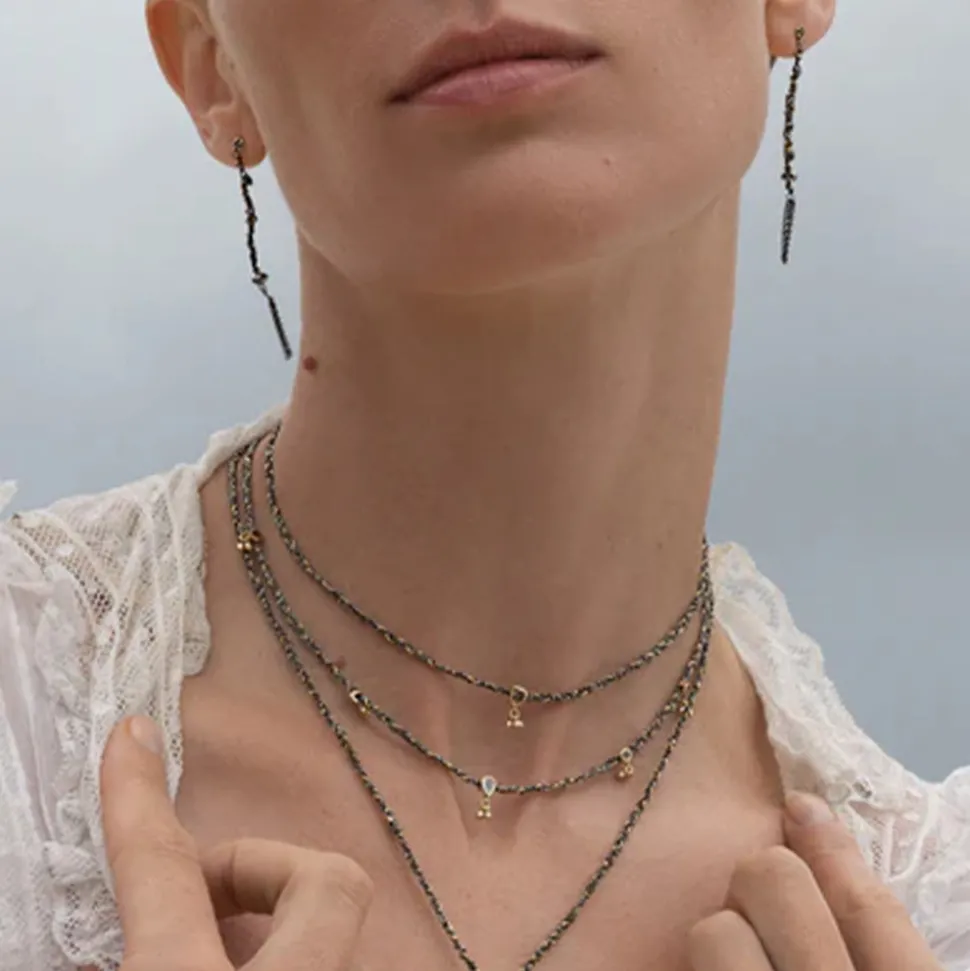 Marie Laure Chamorel allie passion littéraire et savoir-faire de luxe pour lancer sa marque de bijoux en 2006, proposant des créations uniques dites « bijoux textiles ». Inspirée par les trésors des Puces de Paris et de New York, elle crée des pièces où tradition et innovation se rencontrent, utilisant fils, perles, et argent de manière originale. Chaque bijou, façonné à la main à Paris et à Bali, est une expression de l’artisanat moderne et du luxe personnalisé.