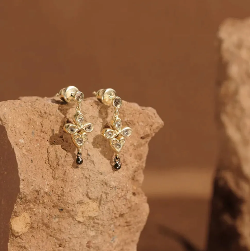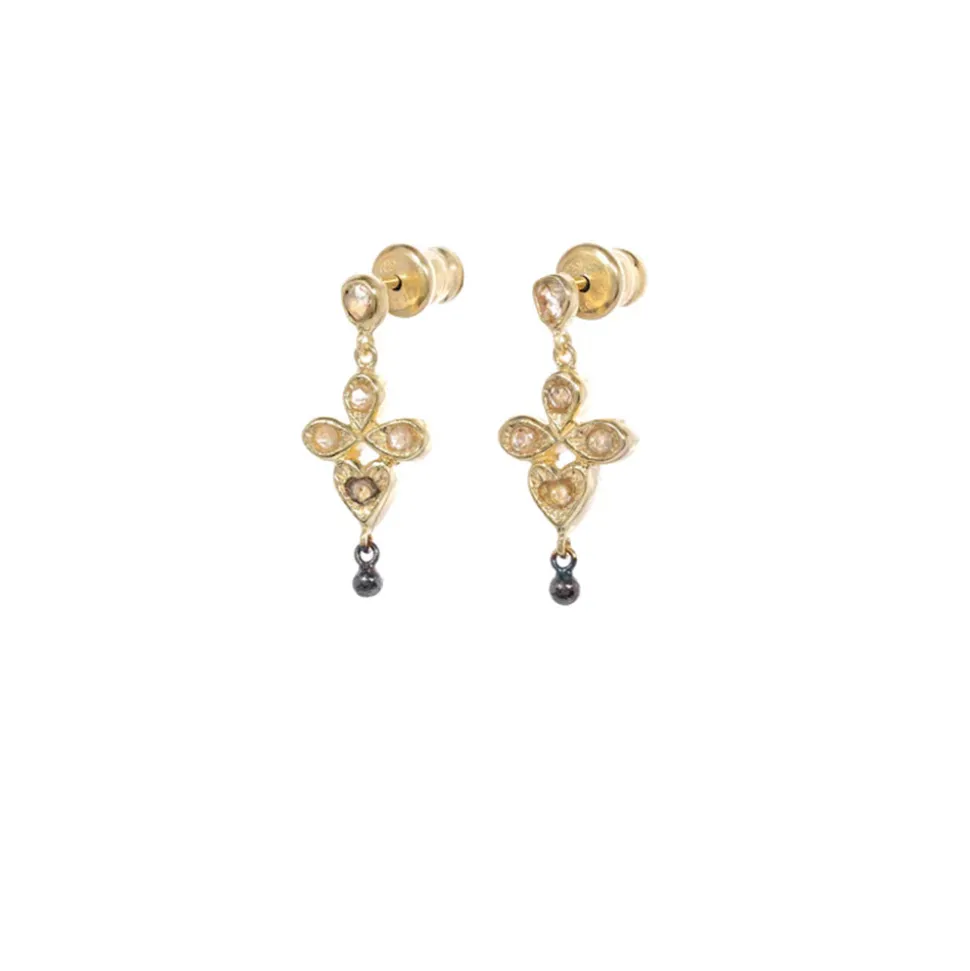 Chaque pendentif est formé de motifs coeurs et de motifs gouttes délicatement assemblés, sertis de diamants Polki