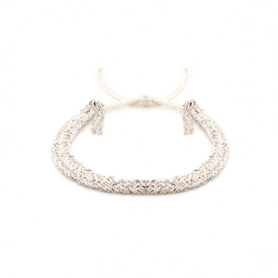 Bracelet iconique tressé à la main est composé de chaînes en argent massif 925 et de fils de soie
