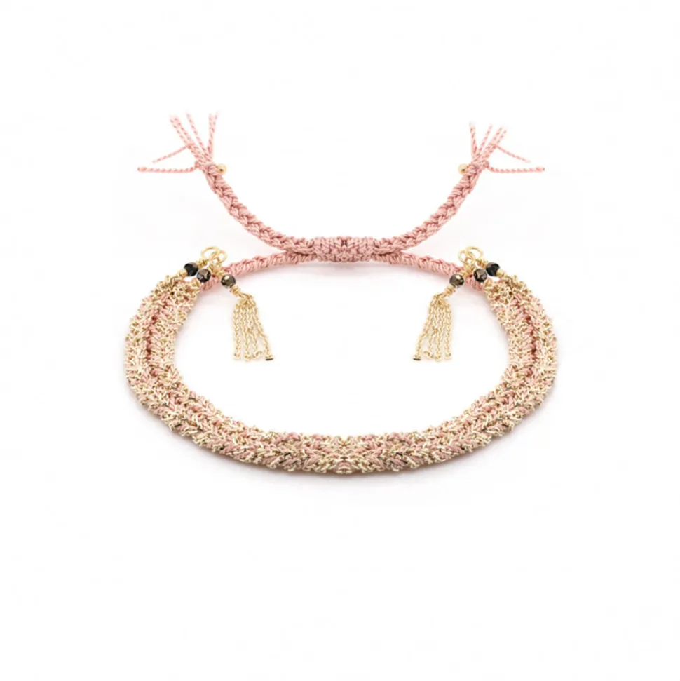 Bracelet iconique tressé à la main est composé de chaînes en argent massif 925 et de fils de soie