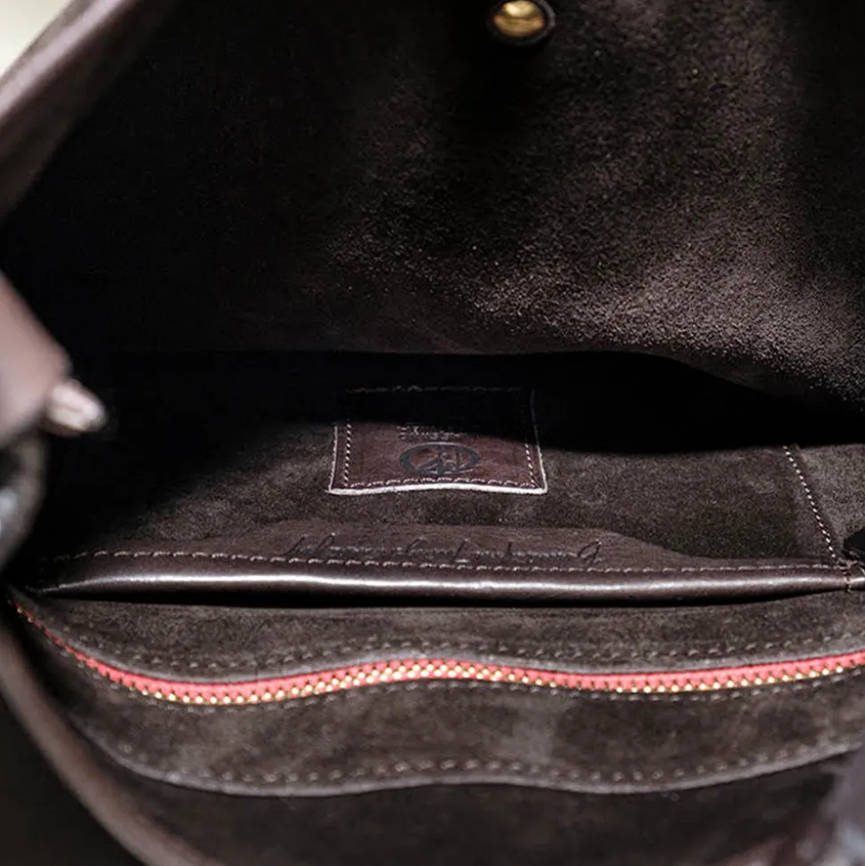 Deux poches intérieures en cuir, dont une avec fermeture éclair.
