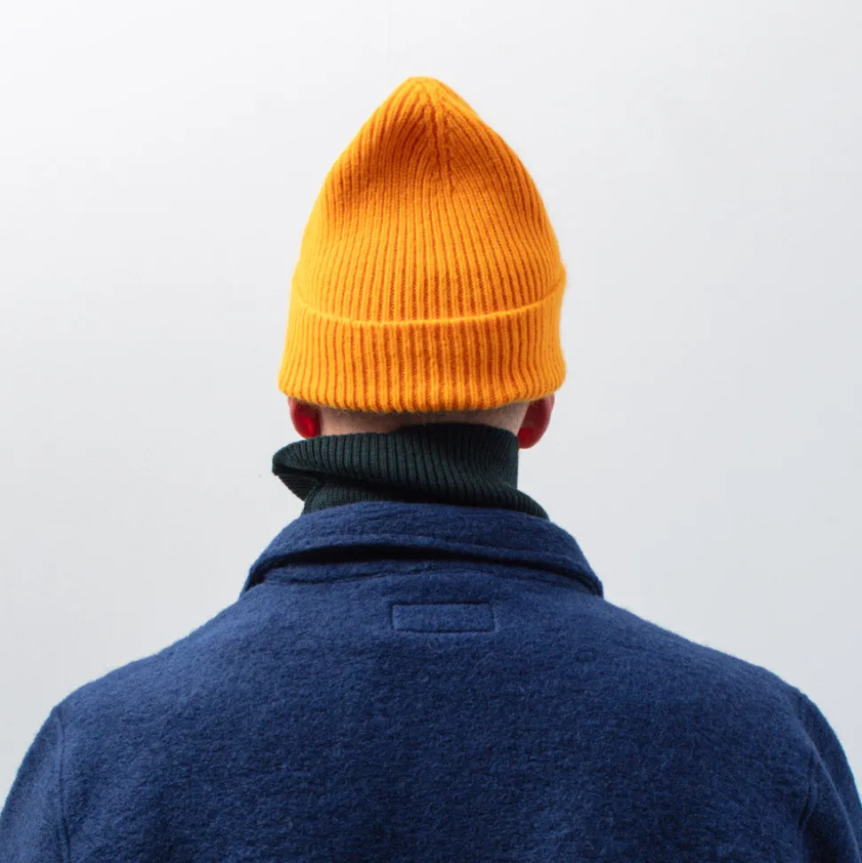 Merci réinterprète la laine à travers une collection volontairement restreinte qui témoigne d’une volonté de revenir à l’essentiel: prendre le temps de trouver la bonne coupe, de choisir un fil de qualité, de penser aux détails qui feront la différence. Bonnet: