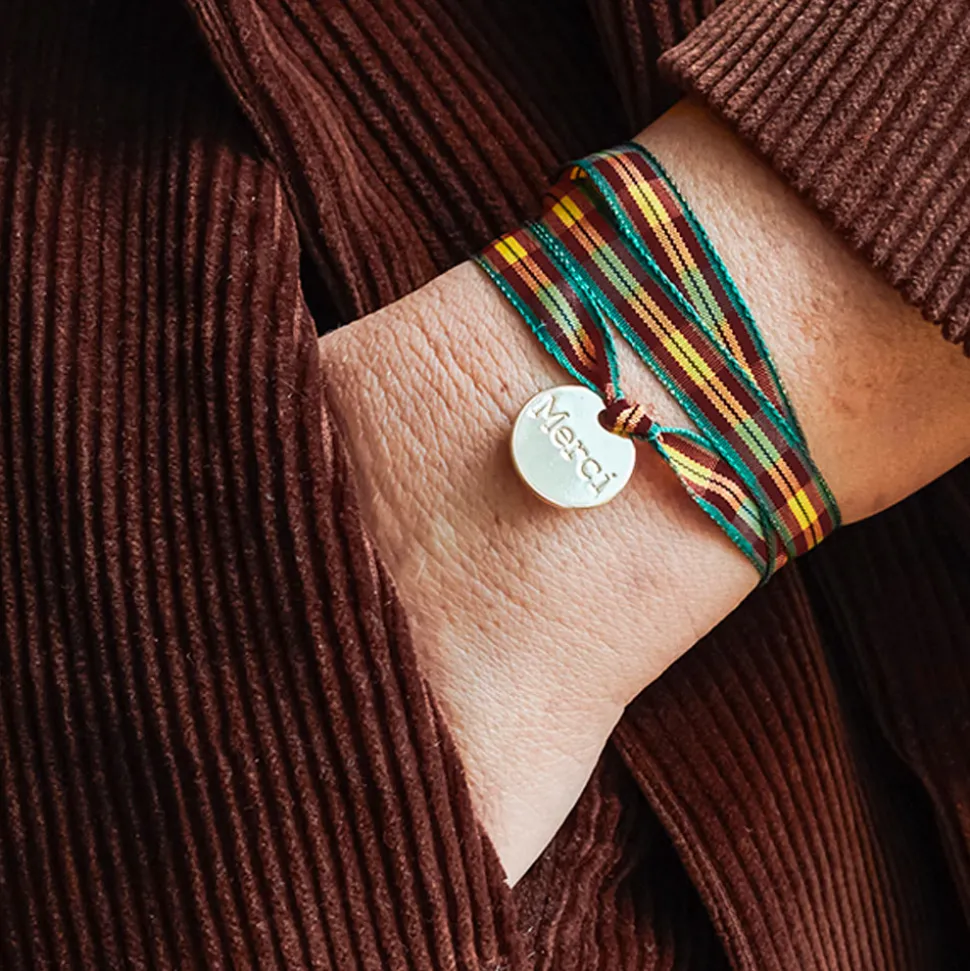 Femme Merci Bracelets Merci|Bracelets-Bracelet à Carreaux Médaille – Bordeaux