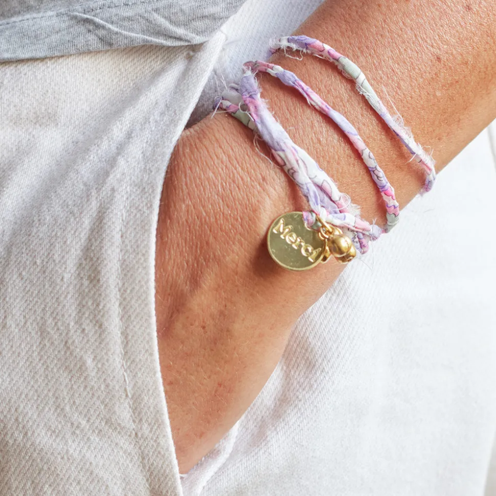 Les bracelets médailles gravés Merci sont légers et agréables à porter, parfaits pour les enfants comme pour les plus grands. Idéal comme cadeau pour toute occasion. Avec son fil de couleur uni ou son bracelet Liberty paré de motifs fleuris, la médaille Merci est un accessoire simple et efficace qui habillera à coup sûr vos tenues.