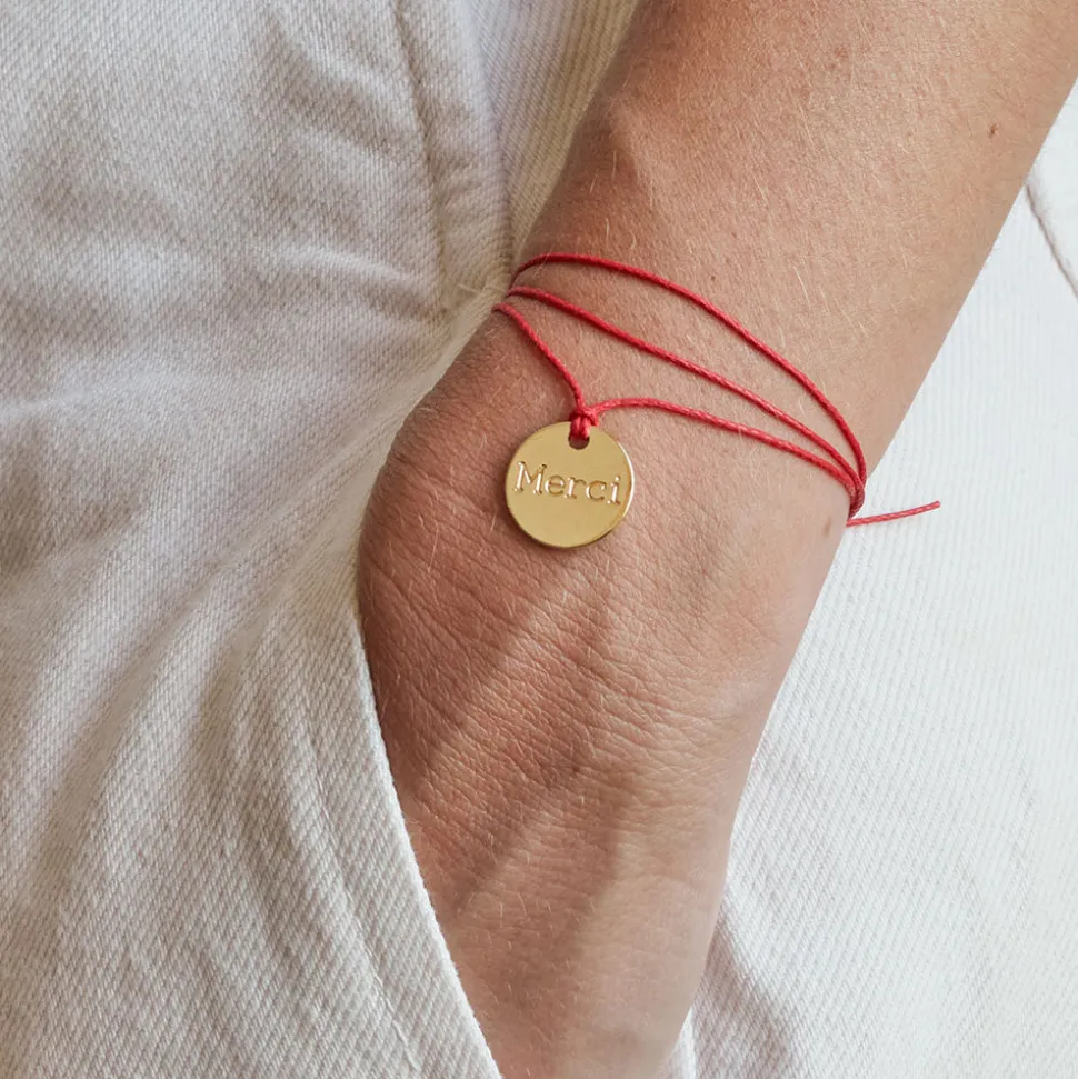 Les bracelets médailles gravés Merci sont légers et agréables à porter, parfaits pour les enfants comme pour les plus grands. Idéal comme cadeau pour toute occasion. Avec son fil de couleur uni ou son bracelet Liberty paré de motifs fleuris, la médaille Merci est un accessoire simple et efficace qui habillera à coup sûr vos tenues.