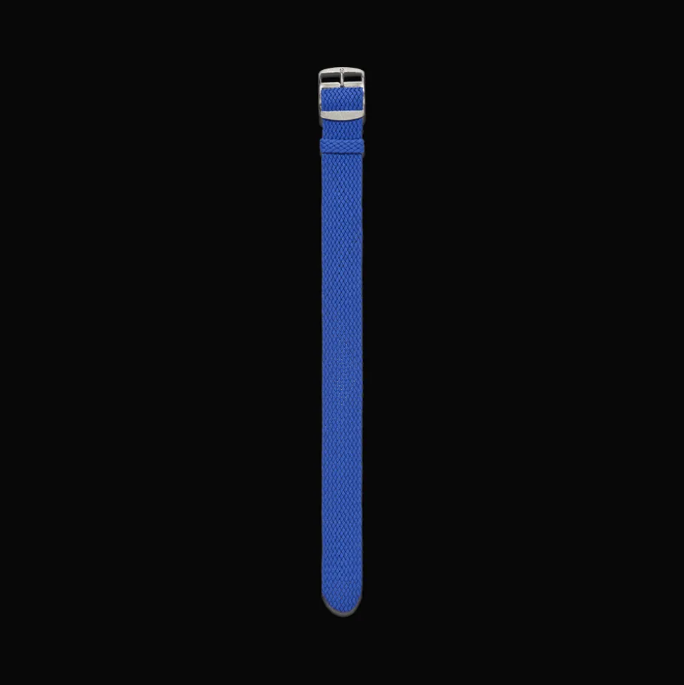 Conçu pour être associé à toutes les montres Merci, ce bracelet est en perlon tressé bleu électrique. Grâce à la structure de sa maille, son réglage est optimal.Sa boucle est en inox.