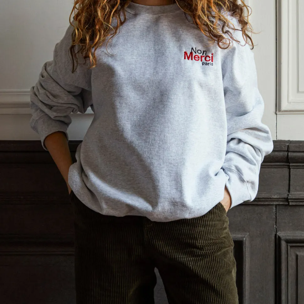 Sweat en coton Non MerciÉcriture « Non Merci » style street art impriméCol rondManches longues, bords côte sur le bor…
