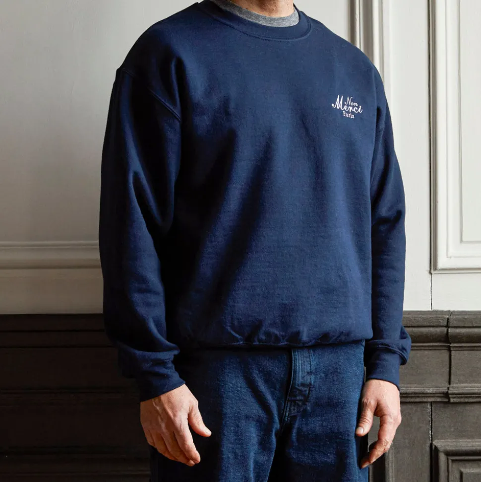 Sweat en coton Non MerciÉcriture « Non Merci » calligraphié et brodéCol rondManches longues, bords côte sur le bord …