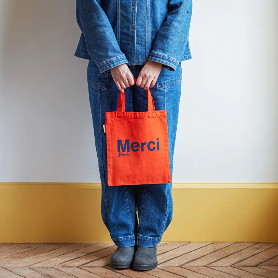 L’iconique tote bag Merci deviendra votre allié du quotidien. Emportez un peu de Merci partout avec vous grâce à ce tote bag pratique et résistant.