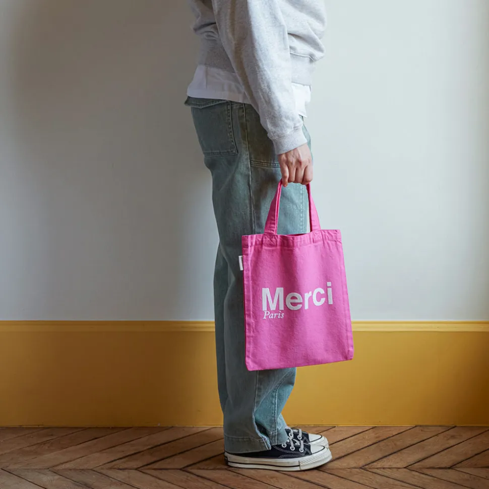 L’iconique tote bag Merci deviendra votre allié du quotidien. Emportez un peu de Merci partout avec vous grâce à ce t…