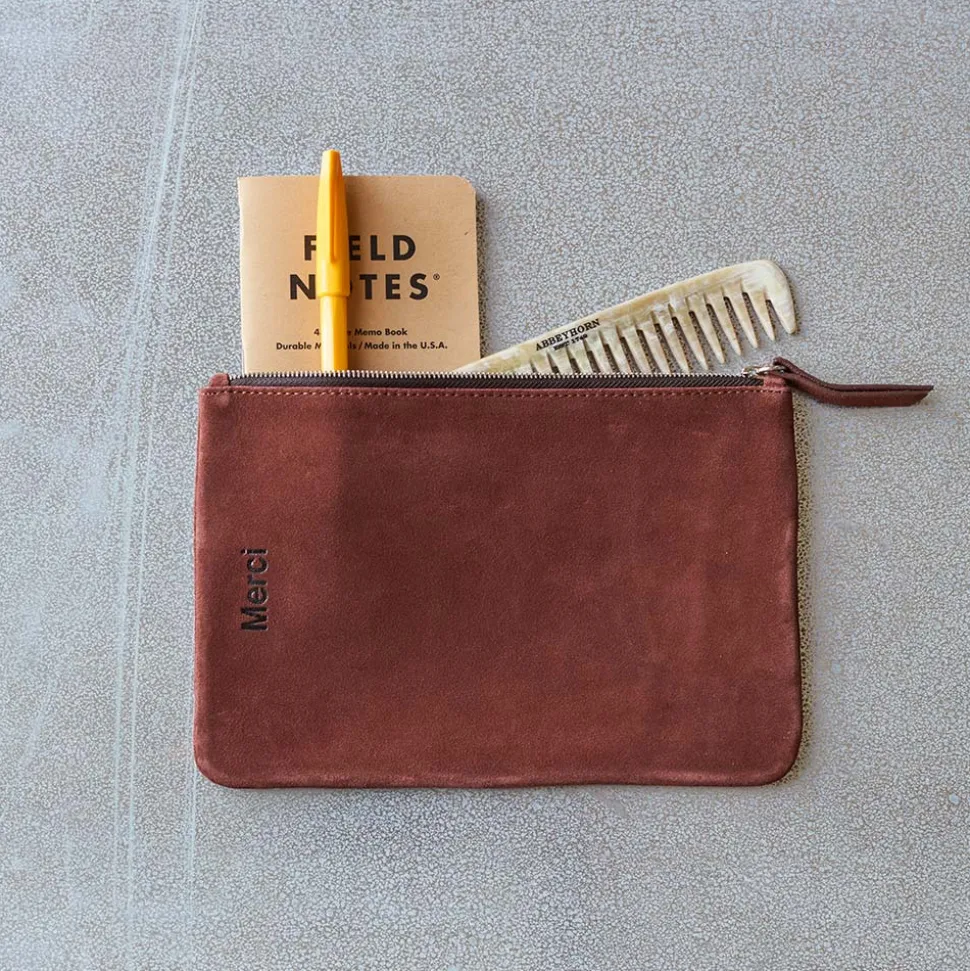 Les pochettes en daim Merci sont idéales pour toutes occasions : à glisser dans un sac et emporter partout avec vous, …
