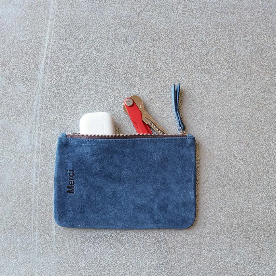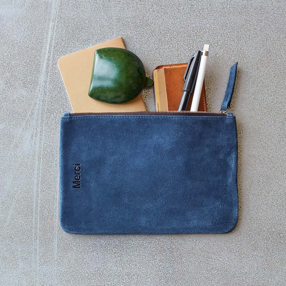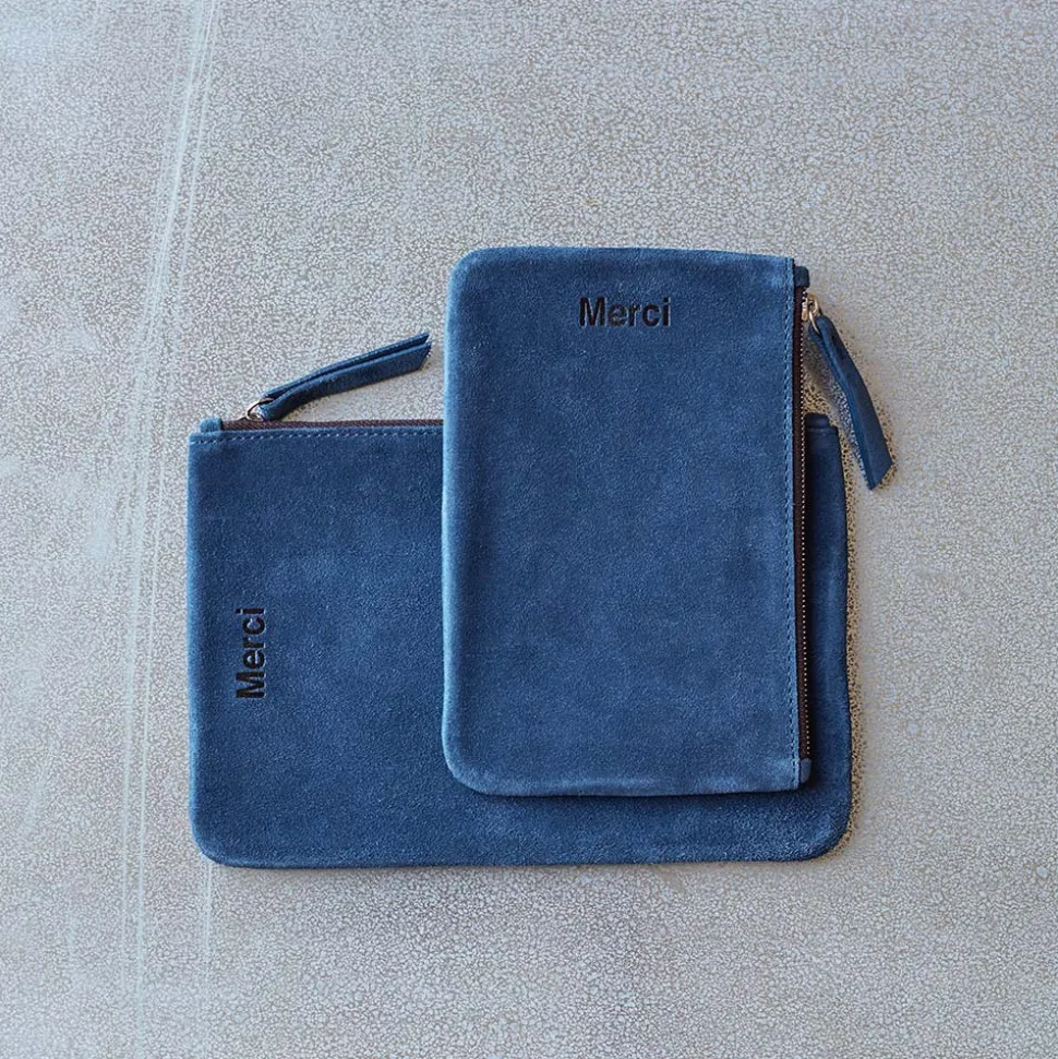 Les pochettes en daim Merci sont idéales pour toutes occasions : à glisser dans un sac et emporter partout avec vous, …
