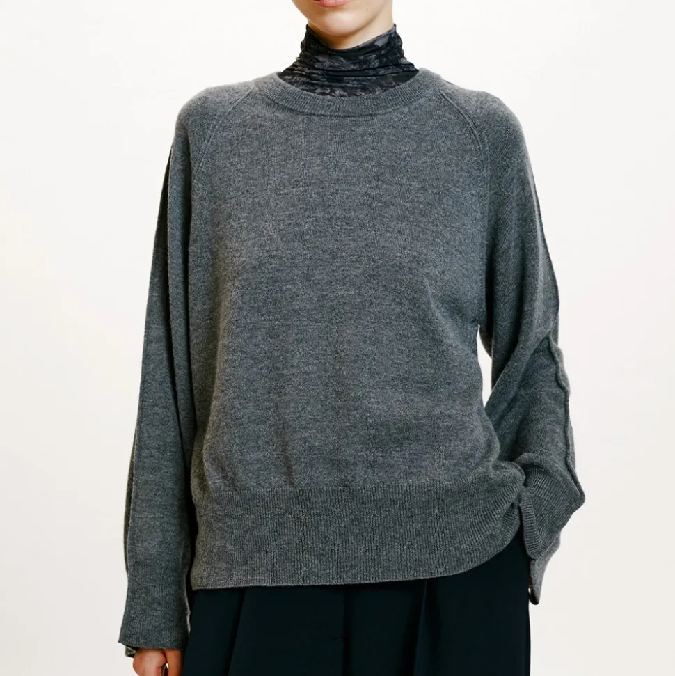 Pull à col ras du cou en laine mérinos mélangée à de la soie et du cachemire.