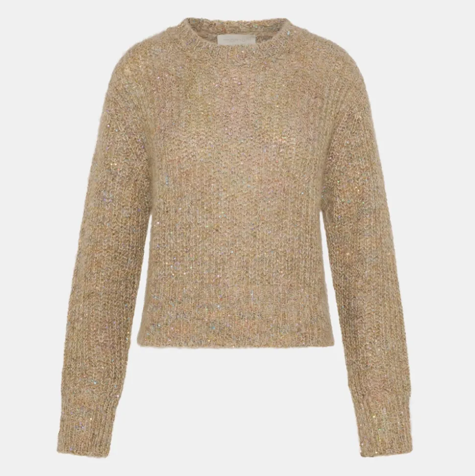 Tricot en mohair avec paillettes. Coupe ajustée, ras du cou, manches longues. Made in Italy.