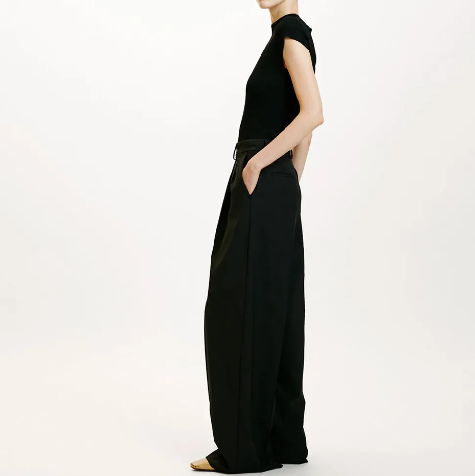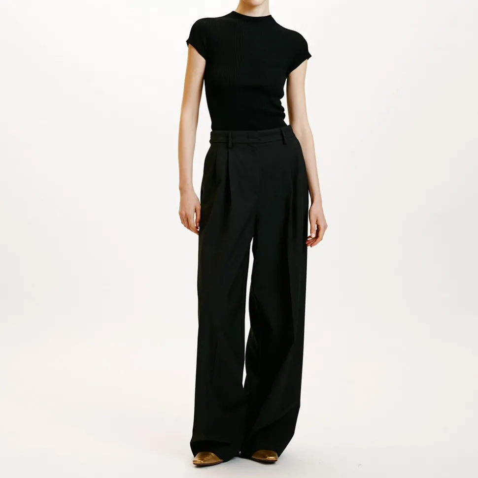 Pantalon long jambe ample en laine froide bi-stretch.