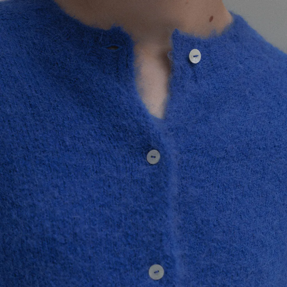 Il s’agit d’un cardigan en mélange d’alpaga qui procure une sensation de confort.