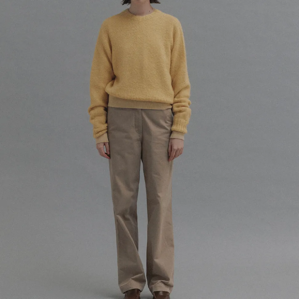 Il s’agit d’un pull-over en tricot à col rond en mélange d’alpaga qui procure une sensation de confort. Il offre une atmosphère confortable avec une ligne de manche naturellement tombante et une silhouette décontractée.