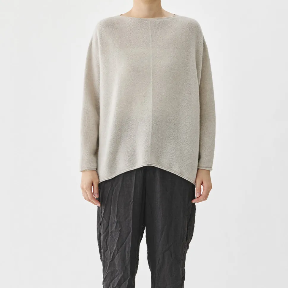 Pull court décontracté à col ras du cou et ourlet arrondi.
