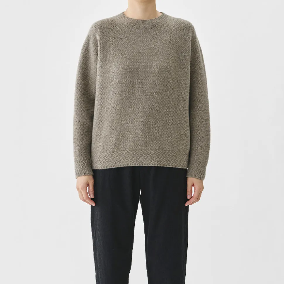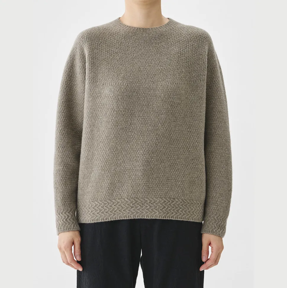 La partie côtelée est également tricotée avec un motif, une technique unique dans le domaine de la maille.