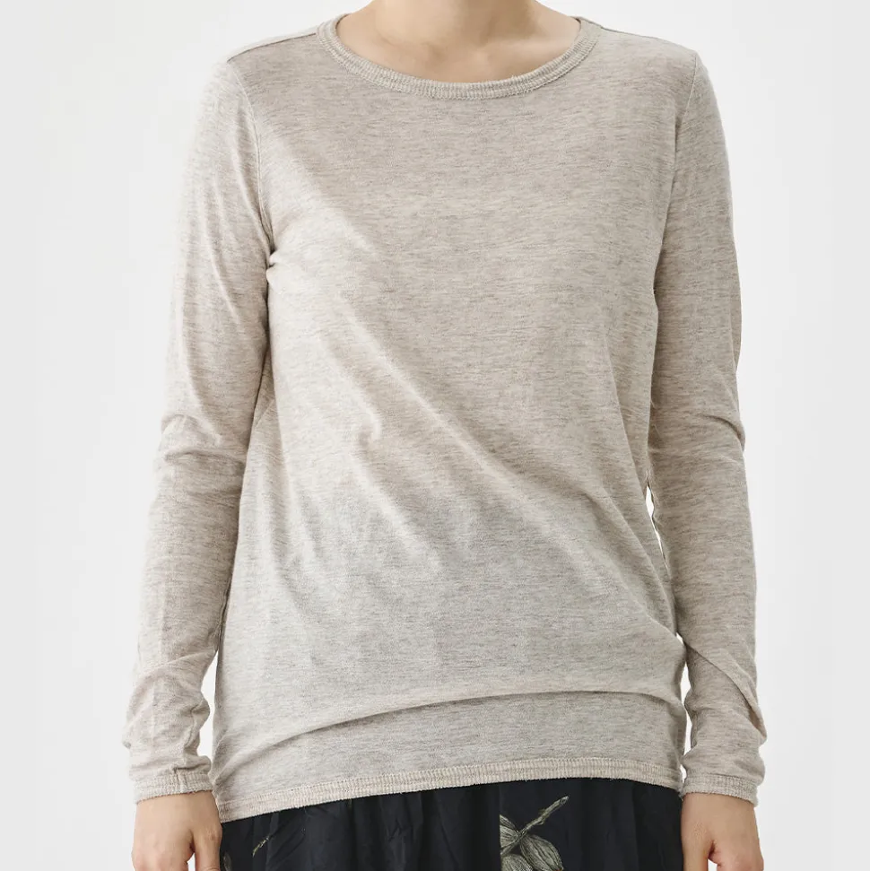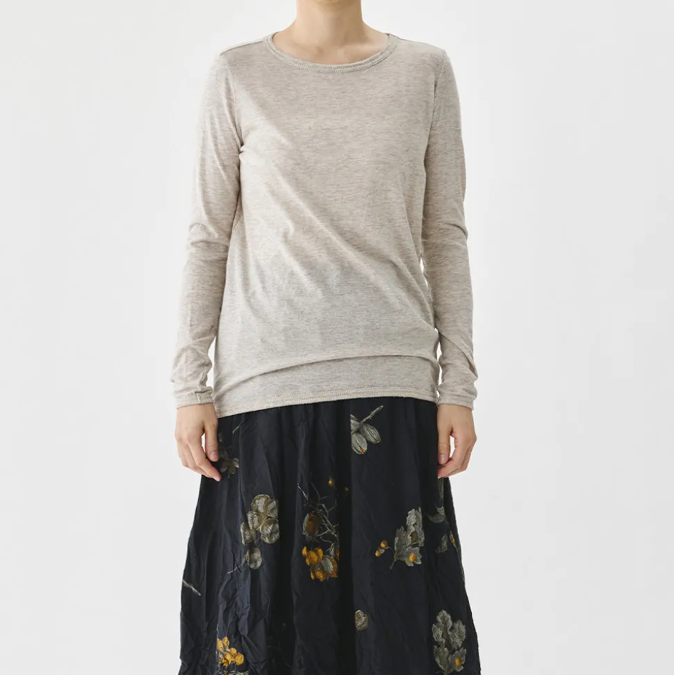 Des côtes de gaze sont utilisées pour le col, les poignets et l’ourlet, et le bord supérieur est coupé par une double piqûre d’aiguille.