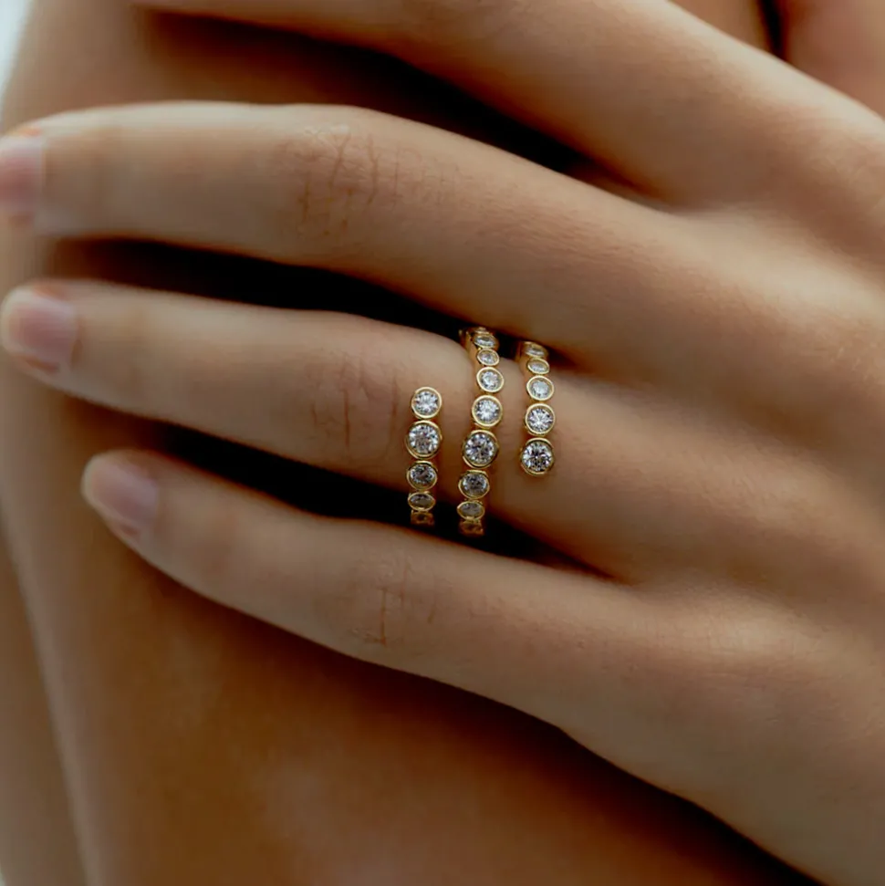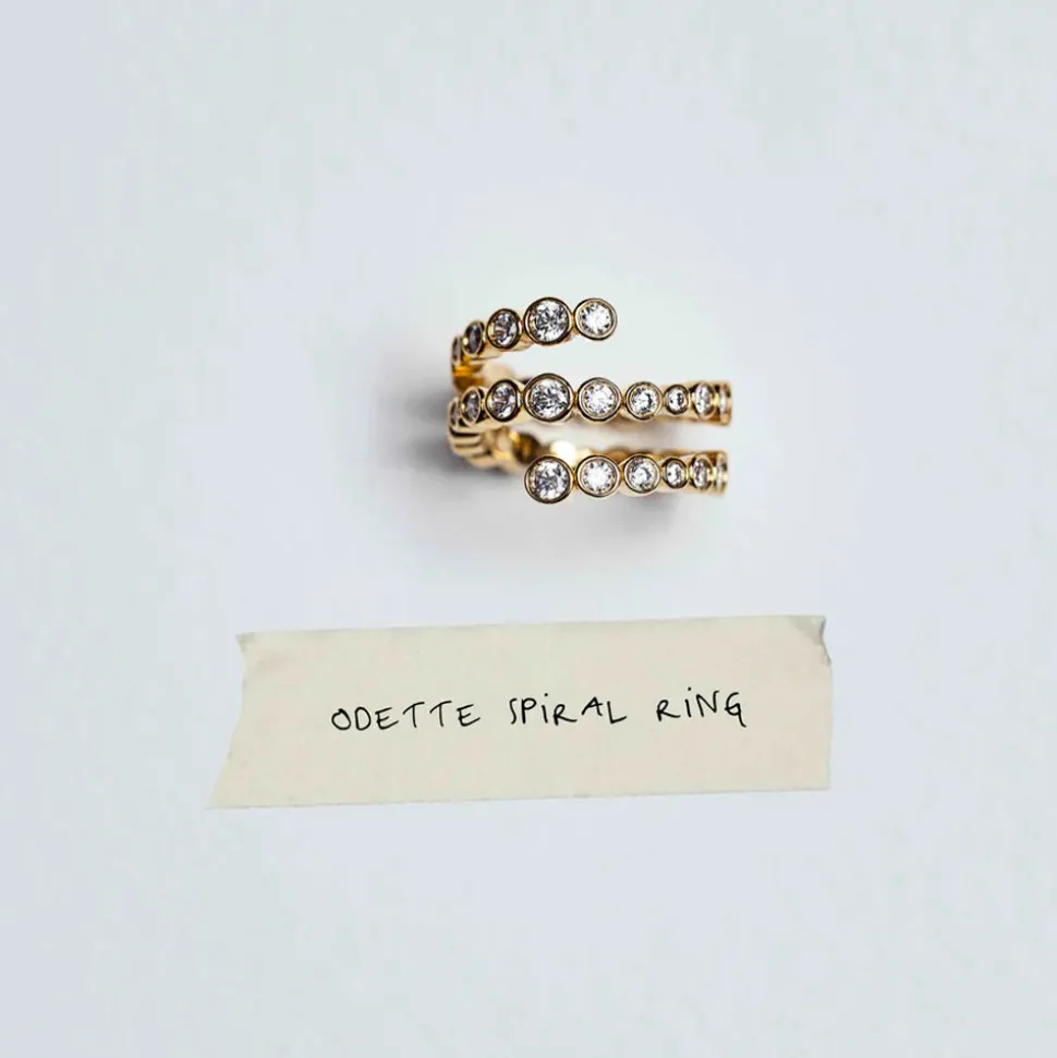 Cette bague en forme de spirale est ornée de différentes pierres CZ blanches cristallines taillées en brillant, serties dans de l’argent 925.