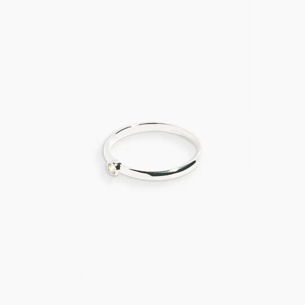 Une bague classique avec une pierre CZ blanche étincelante, taillée en brillant, sertie dans de l’argent sterling 925.