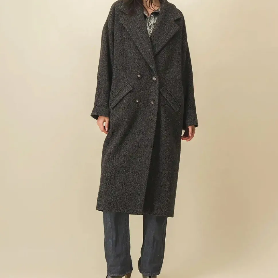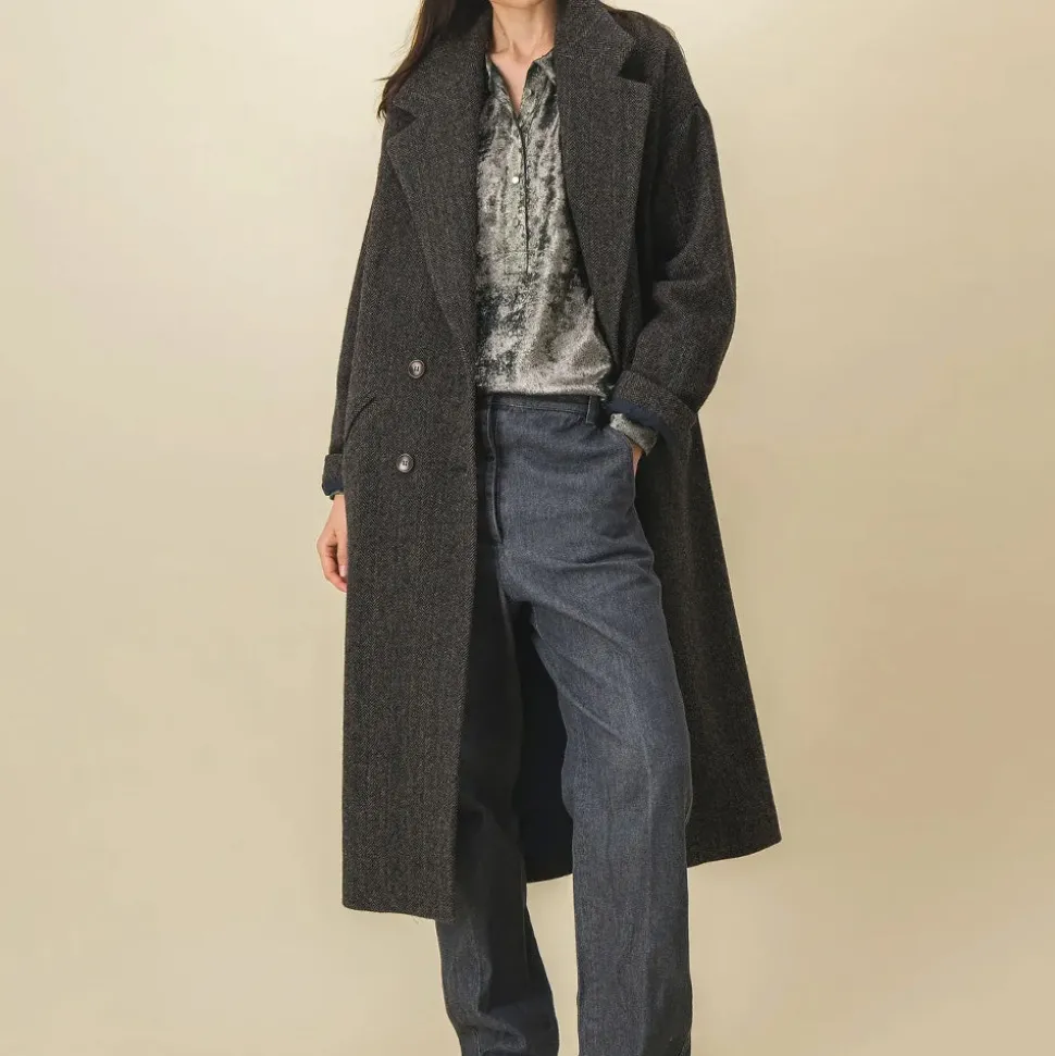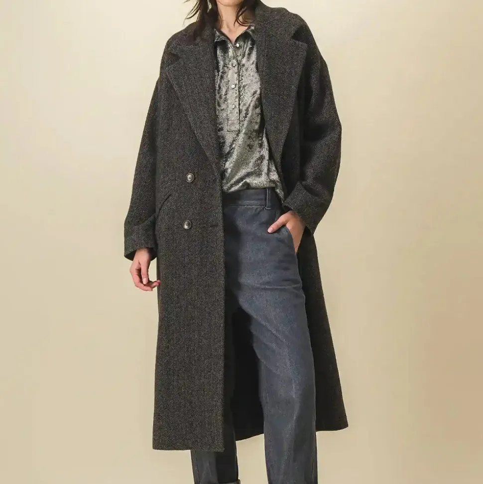 Manteau femme long oversized à chevrons verts et noirs