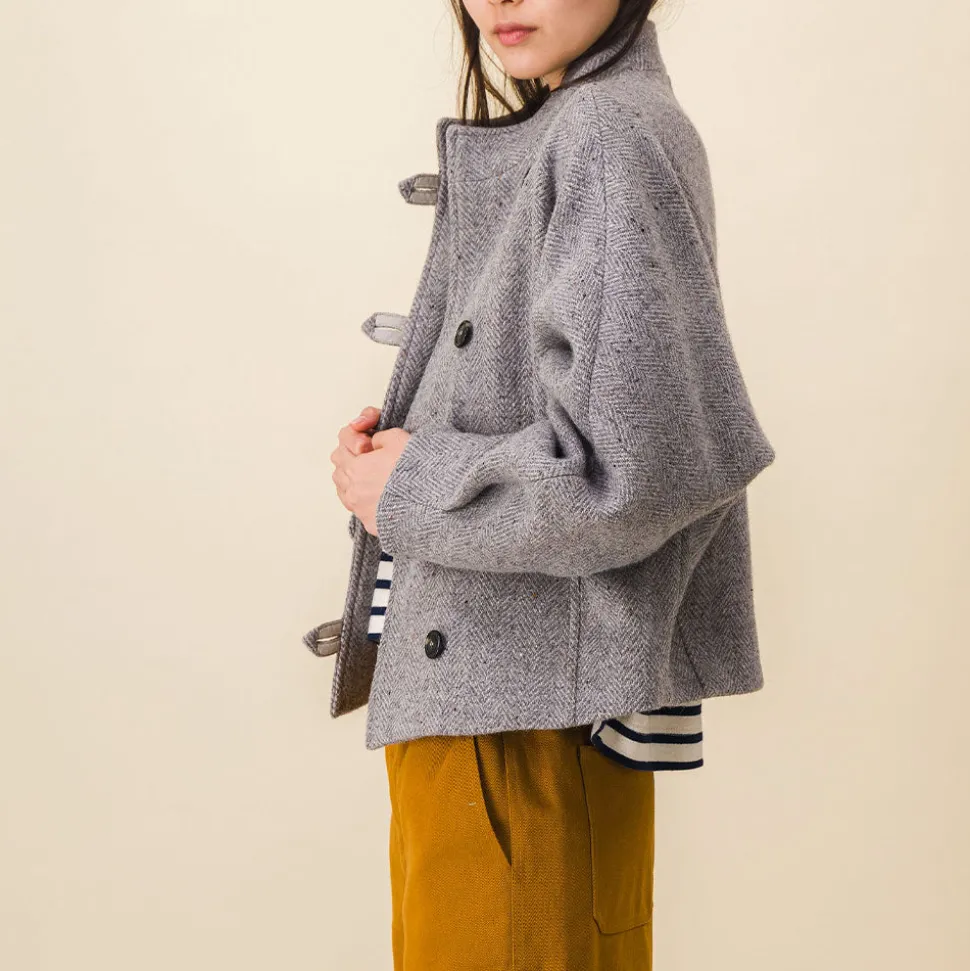 Blouson court , aux volumes généreux , manche raglan, poches cotés, petit col officier