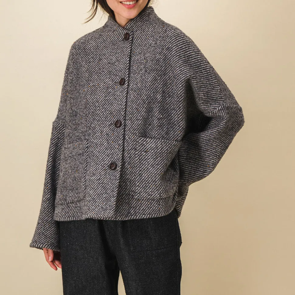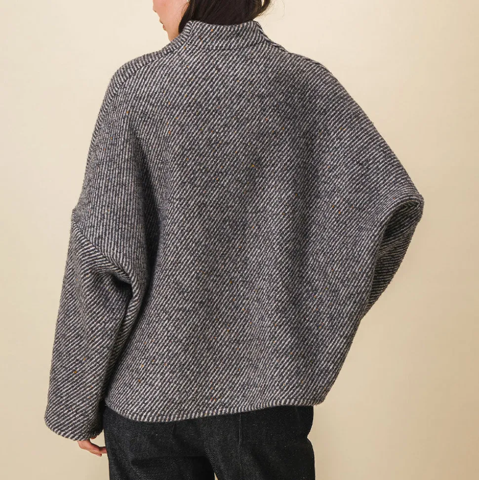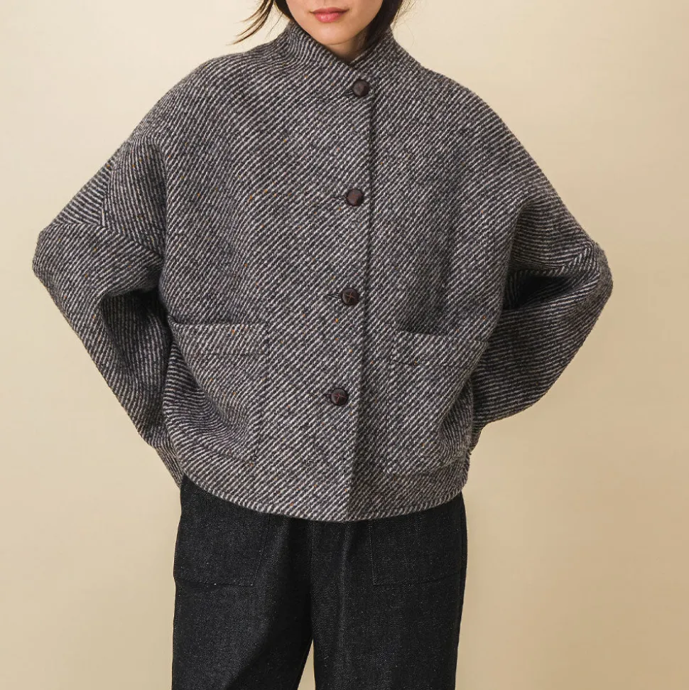 Veste beau lainage diagonale gris et écru.