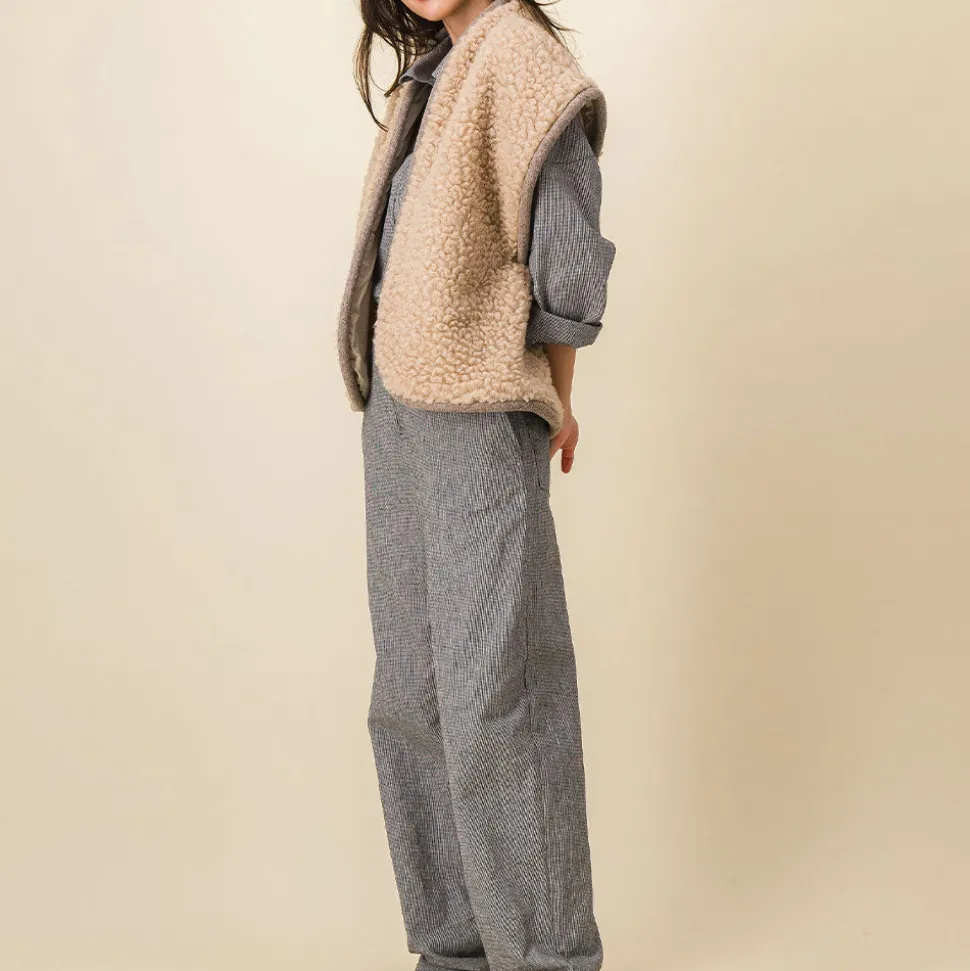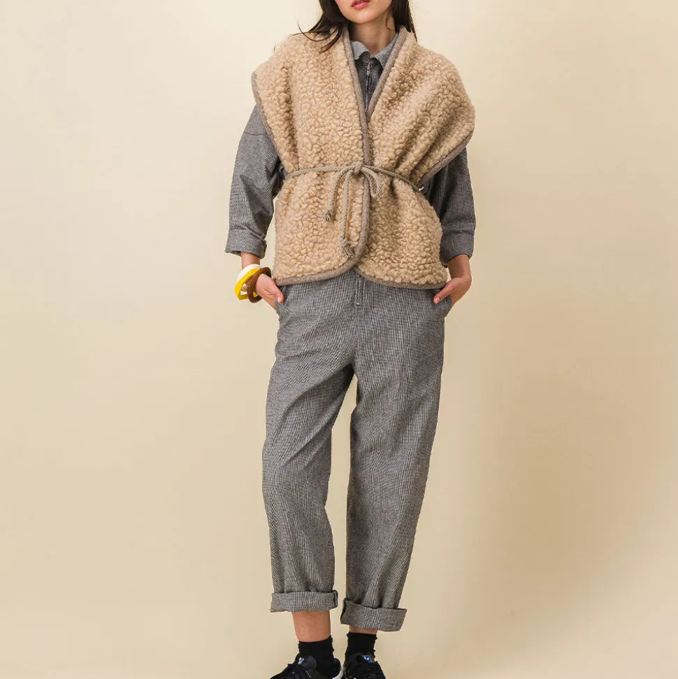 Contour bordé d’une ganse ouatinée recouverte d’un lainage beige chiné.