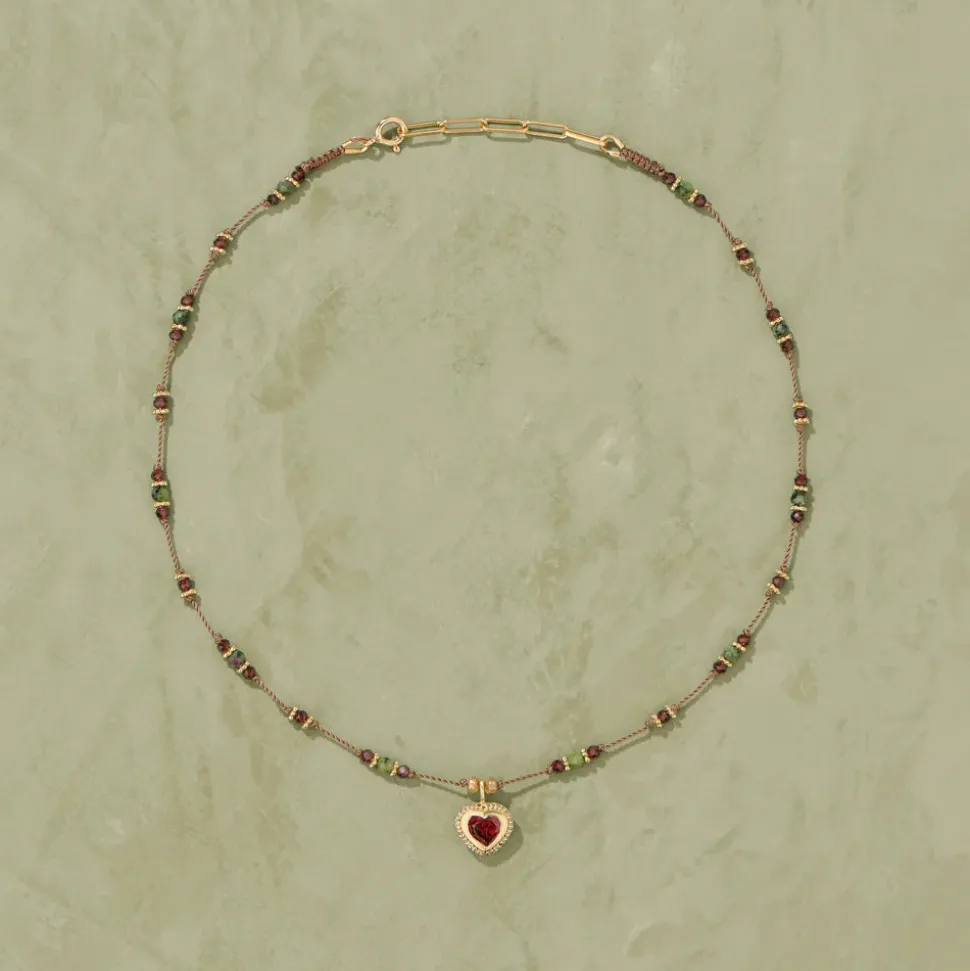 Pierres fines : Zoïsite et grenat sur fil beige,