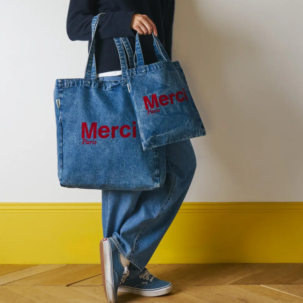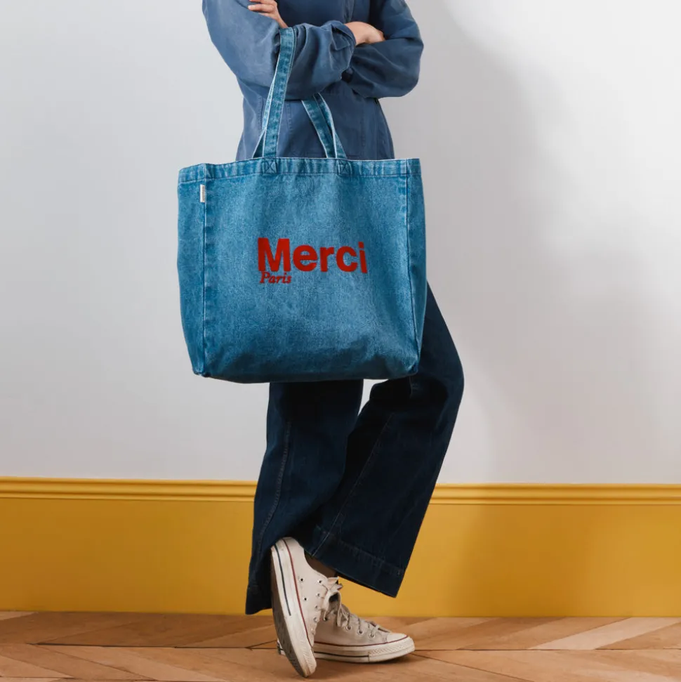 L’iconique tote bag Merci deviendra votre allié du quotidien. Emportez un peu de Merci partout avec vous grâce à ce tote bag pratique et résistant.