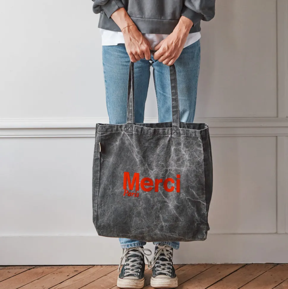 L’iconique tote bag Merci deviendra votre allié du quotidien. Emportez un peu de Merci partout avec vous grâce à ce tote bag pratique et résistant.